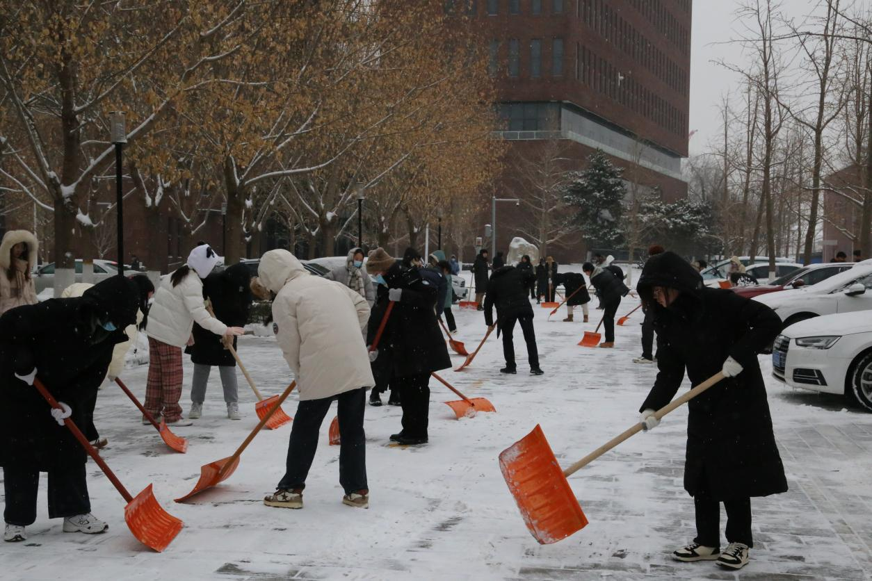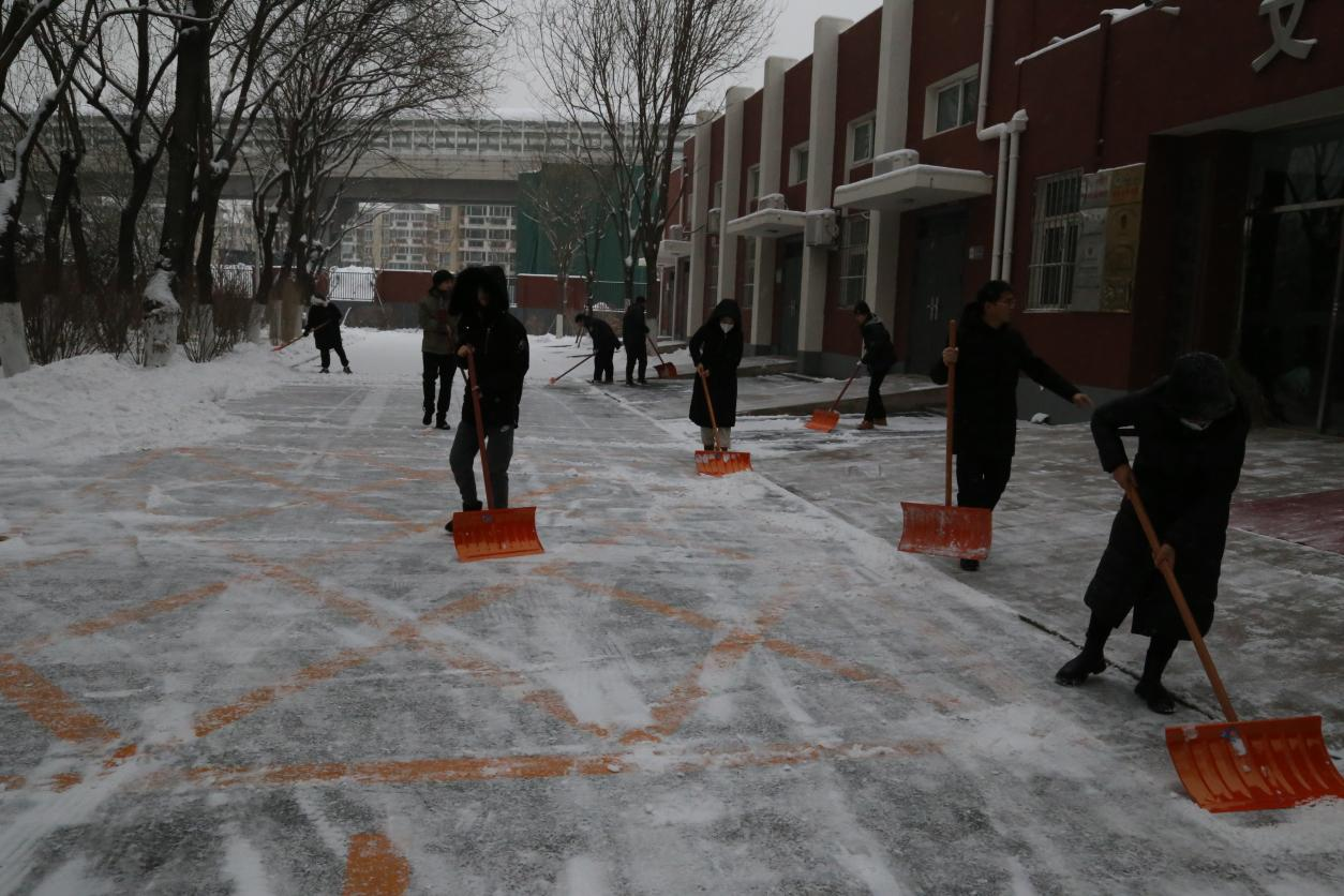 风雪弥漫处 扫雪暖意浓|扫雪除冰SB博彩 师生齐上阵