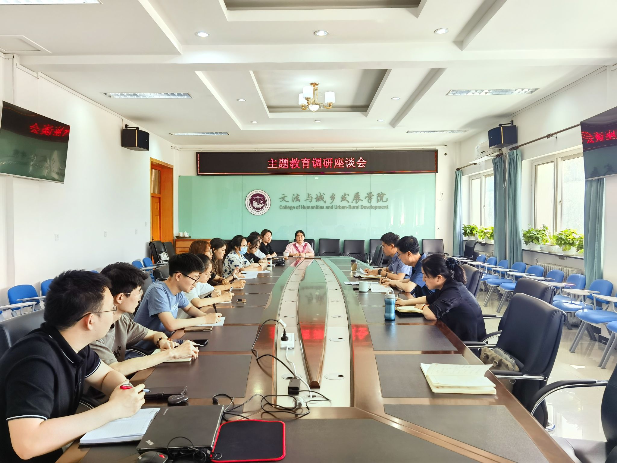 党委组织召开学生党员、学生干部、入党积极分子代表座谈会,会议主题围绕“如何发挥先锋模范带头作用,齐心协力推动主题教育向纵深发展”展开,征求意见建议。学院党委书记赵和文,党委副书记、院长韩芳,组织员马宇然参会,会议由学院团委书记、辅导员周旭平主持。