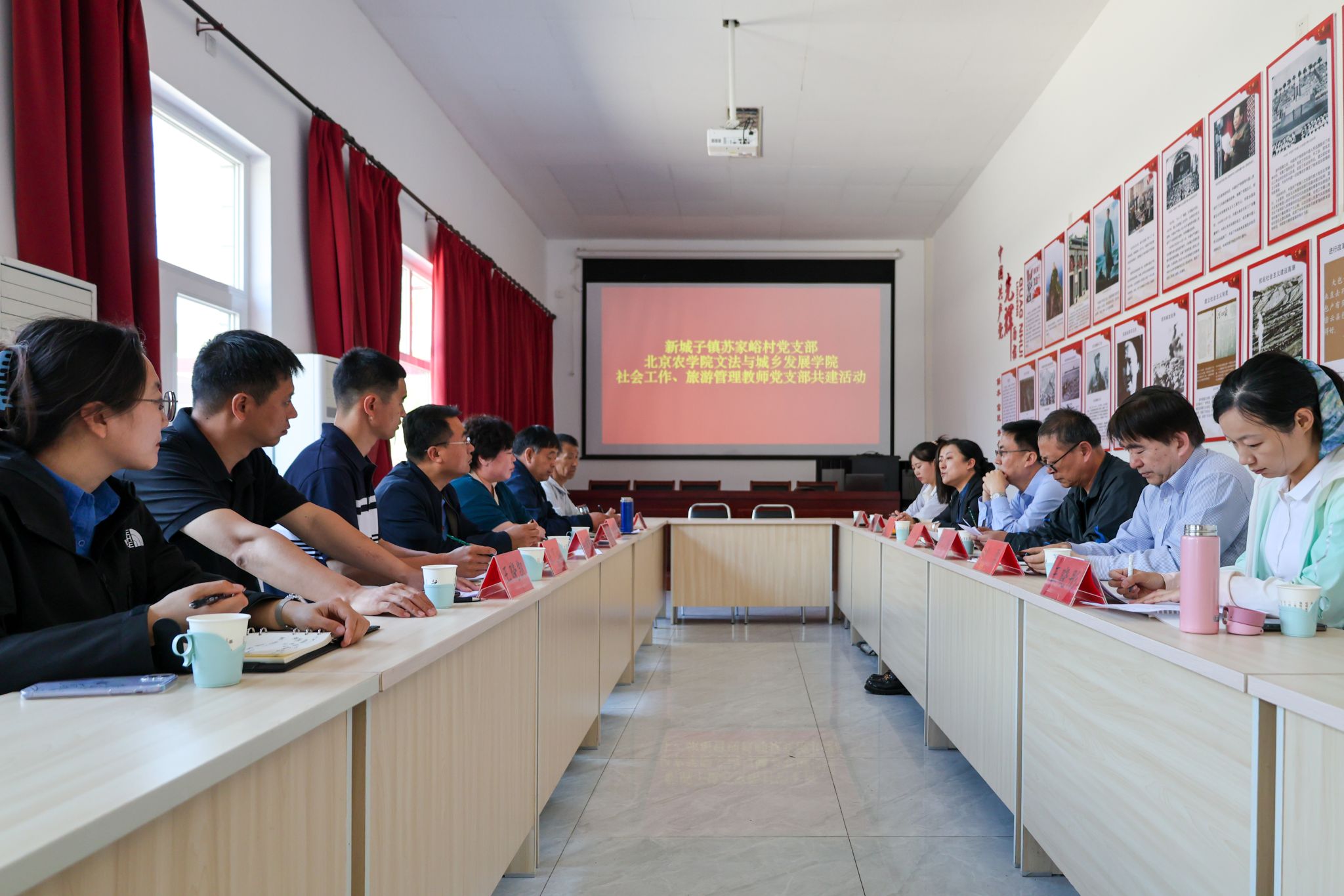 社会工作教师党支部携手旅游管理教师党支部与密云区新城子镇苏家峪村党支部开展支部共建主题党日活动。学院党委书记赵和文,党委副书记、院长韩芳带领师生党员参加。