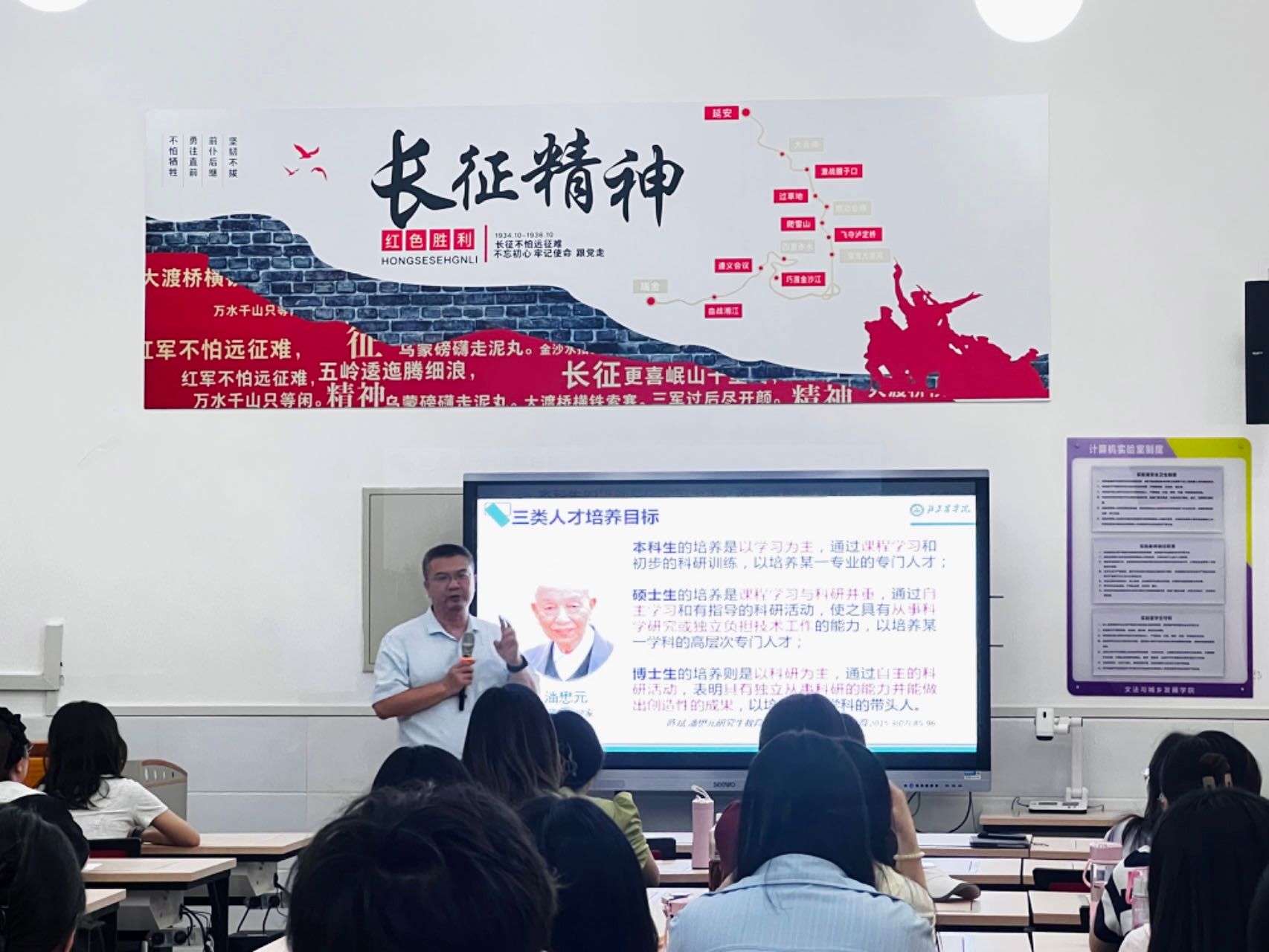 营造学术氛围,树立研究生研究意识。为弘扬科学精神,营造良好学术氛围,加强科研诚信建设,进一步提高研究生的学术道德修养。9月6日上午,学院5位教师分别开展了学术讲座,董景山教授讲解北京乡村治理实践课题的研究思路,陈曦老师围绕本人专著讲述了口述史在农村社会工作的探索和应用,胡新萍老师围绕近期个人研究讲述了如何发现兴趣、做好研究,王润老师讲解了乡村生态韧性评价的主要方法与应用,申强教授报告了自己近期的研究进展:基于要素共享的平台型农产品供应链质量协同控制体系研究。9月6日下午,学院进一步邀请了优秀毕业生代表、优秀在校研究生代表,以多重视角与同学们分享了毕业论文、发表论文、实践实训经验,鼓励新生尽早转变角色,树立研究意识.