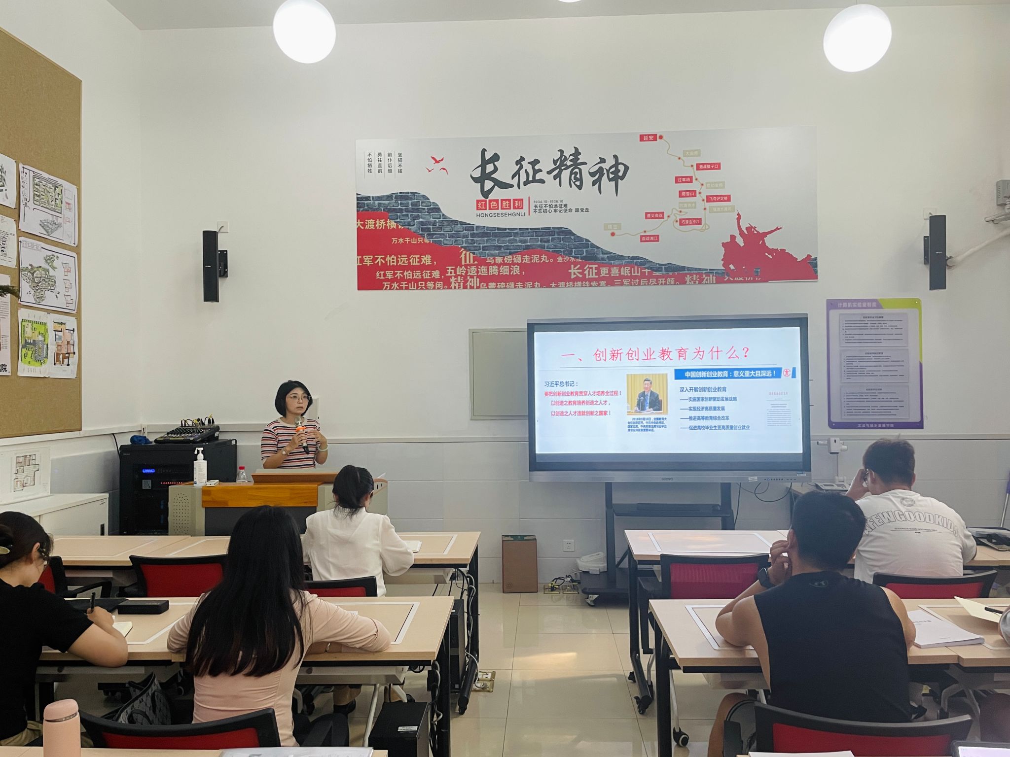 鼓励创新创业实践,夯实职业规划教育。9月7日下午,创新创业学院副院长孙曦为大家开展新生职业教育。她从创新创业是什么、做什么、为什么三方面向大家详细介绍了创新创业与职业规划教育。她指出研究生阶段是创新创业的高阶段,希望创新创业能够陪伴大家度过未来两年完整的的研究生生活,并帮助大家不断提升创新能力和实践能力。院团委副书记周旭平向新生介绍了基础团务工作,倡议大家积极加入学生组织,在学生组织中充分锻炼自己的能力、发展兴趣、确立自己的目标和未来方向。研究生辅导员老师安利清对新生开展了在校期间纪律和安全教育,为同学们以后的学习、生活树立了标准尺度,让其做到心中有制度、行为有约束。优秀研究生毕业生代表和在校生代表就参加创业比赛的实践经验、读研期间职业规划等进行了分享。