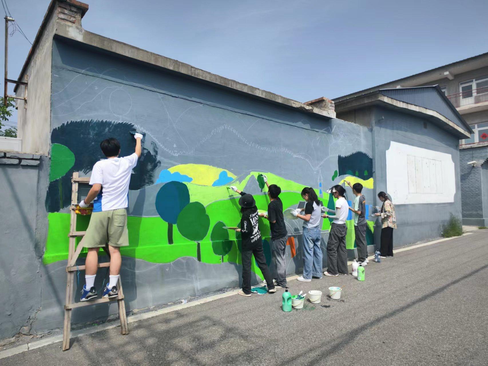 花塔村乡村振兴实践团于7月5日前往昌平区南口镇花塔村,开展墙绘实践活动。通过墙体彩绘的形式,用多彩的艺术元素点缀乡村,助力打造更加美丽的乡村风貌。