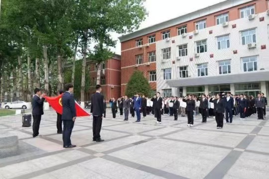 4月21日上午7点,学院在行政楼前举行“红旗映初心 誓词砺使命”主题教育活动。伴随着雄壮的国歌声,五星红旗冉冉升起,全体师生肃立注目,齐唱国歌。升旗仪式结束后,校团委书记张卿、SB博彩