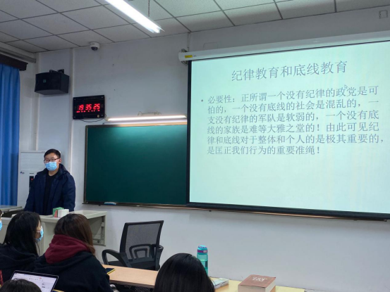 为了进一步增强我院新生的遵守法律和纪律的意识,加强同学们的遵纪守法的观念。我院近日开展了关于纪律和底线的新生教育主题班会。