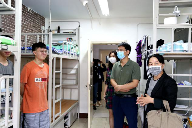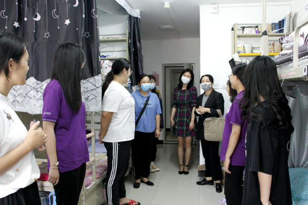 9月14日下午3:30,为了了解新生入学后的生活学习适应情况、对学校防疫工作的认识和自身防疫准备,党总支书记赵洪娥、院长韩芳、副院长龚刚强、副院长副书记李云乐老师,辅导员周旭平、兼职辅导员李佳泽在班助的带领下,先后前往学生公寓5号楼、3号楼和7号楼走访了新生宿舍。