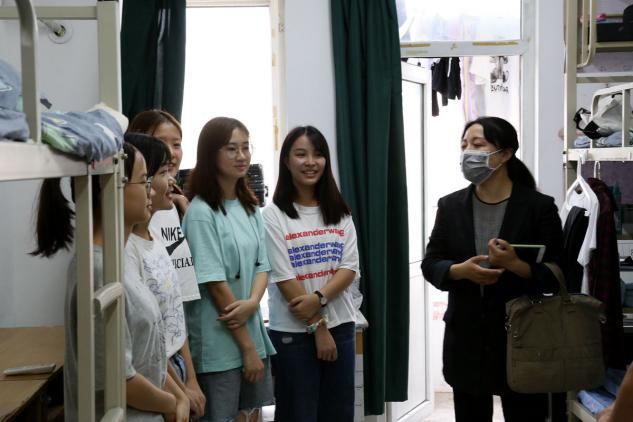 老师们耐心地询问同学们入住宿舍的情况、对学校、学院的了解和对防疫工作的心理准备。针对同学们在宿舍生活普遍会遇到的问题进行了详细解答,同时提醒同学们在宿舍学习生活中要注意用电安全,勤通风,保持宿舍卫生以及良好的作息规律,处理好同学关系等。