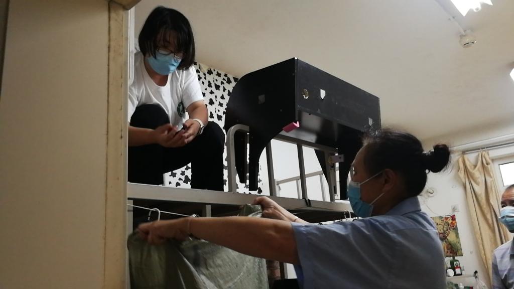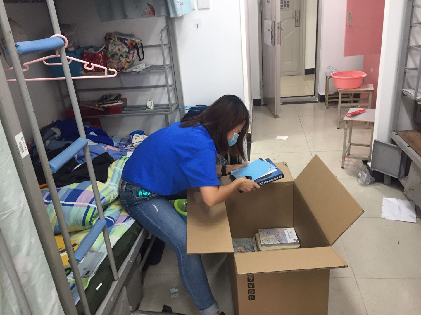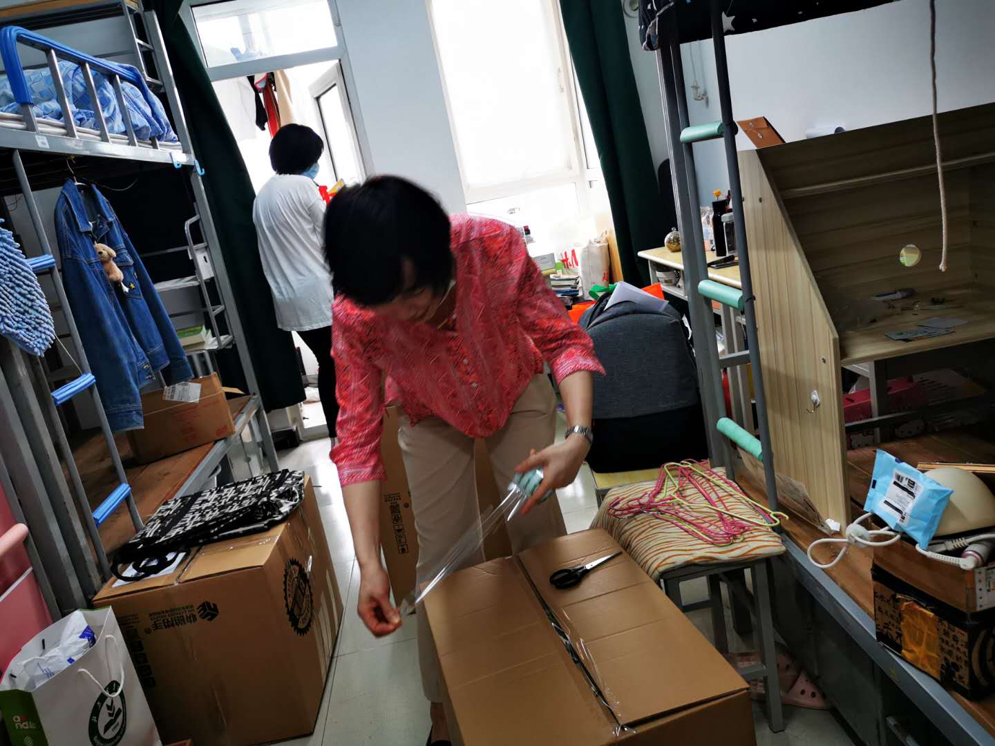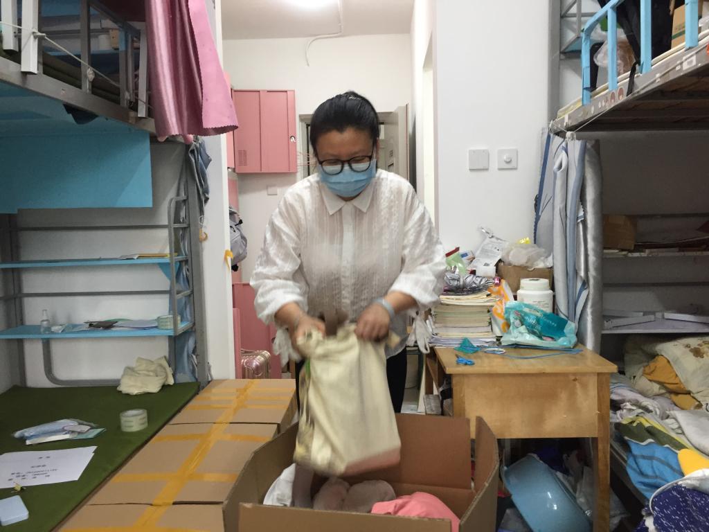 老师们与毕业生视频连线打包行李,精准确认行李清单,并与返校的同学们精心帮助未返校毕业生整理宿舍生活用品和书籍,秩序井然。让未返校的同学安心,放心。
