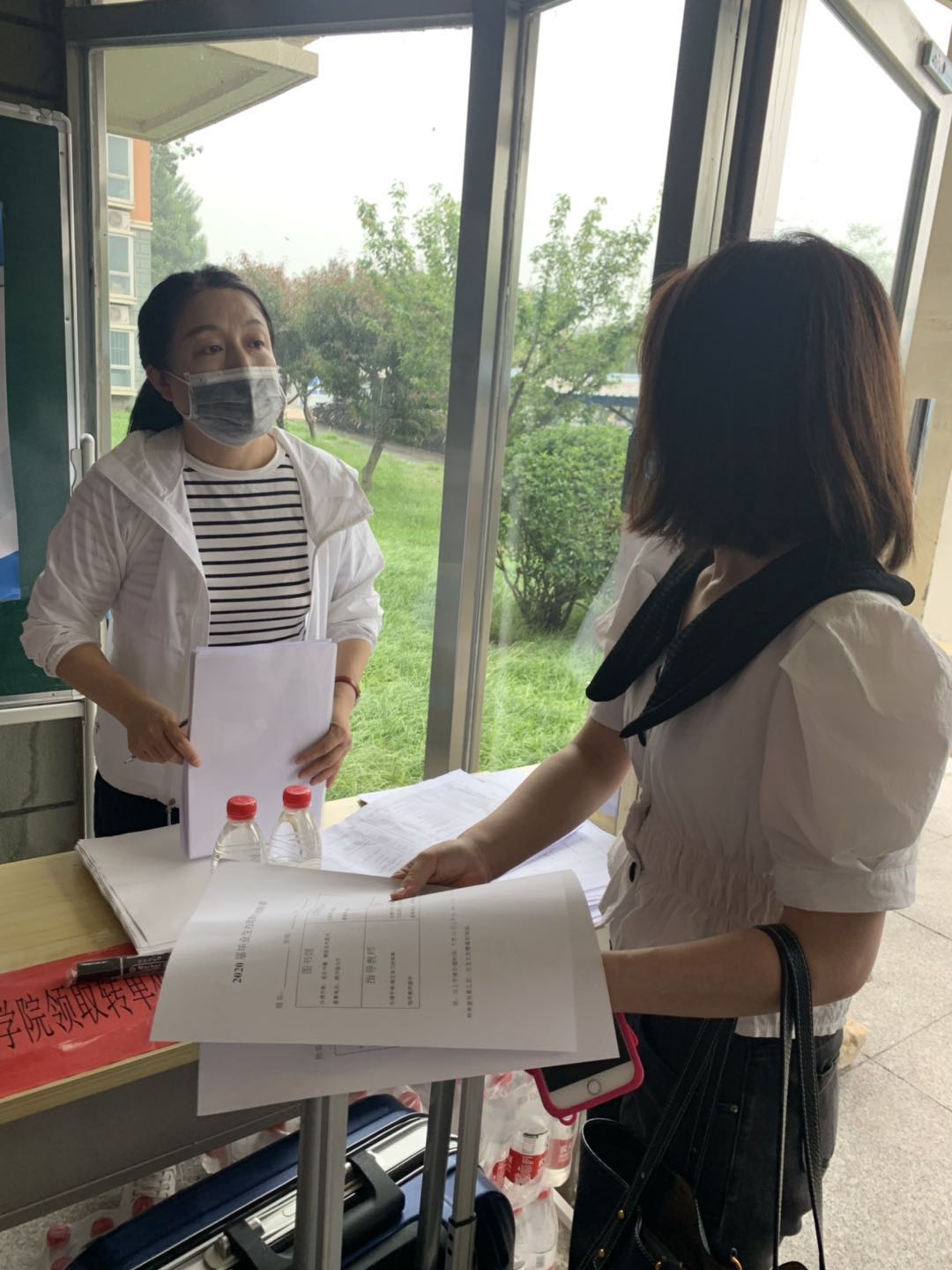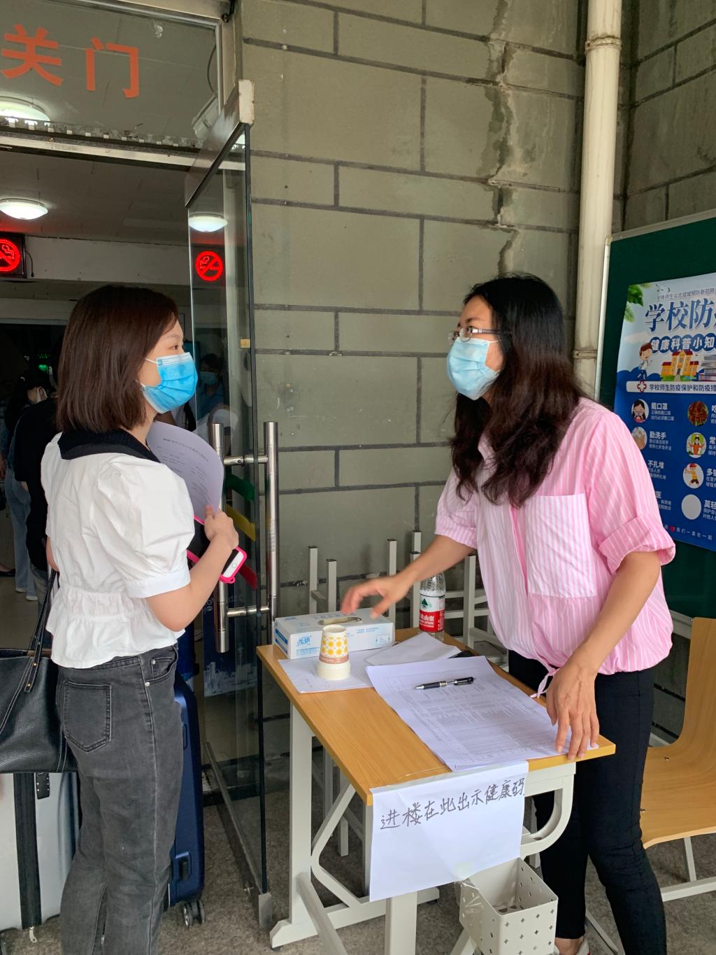 教师彭君芳:作为毕业班班主任,再次见到同学们还是很激动的,早晨起大早赶到宿舍楼,迎接陆续到来的学生,虽然戴着口罩,仍然觉得熟悉又温暖,在这特殊的毕业季,希望尽自己的一份力,传达自己对学生的爱与祝福!惟愿他们前程似锦,所到之处,晴空万里!