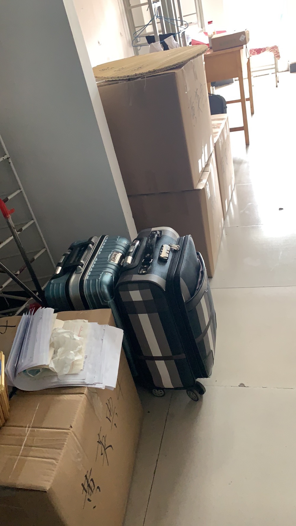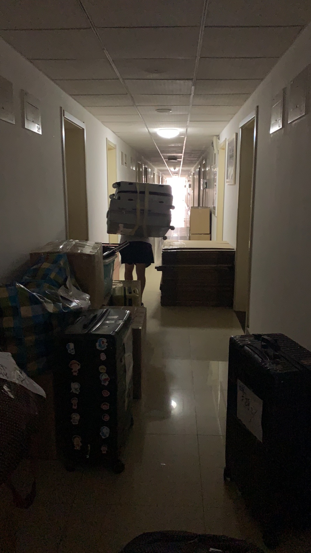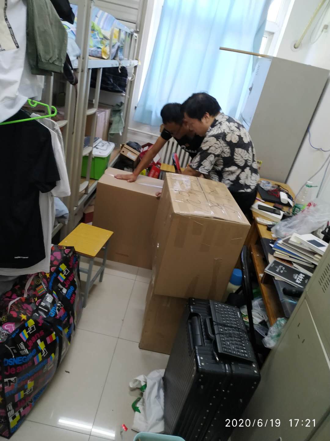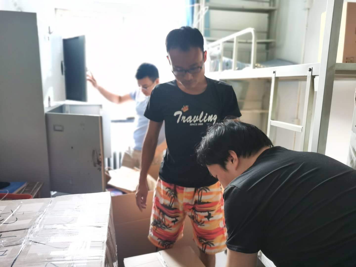 陈稳重、雷广元、赵中宝和罗永鑫首先完成了男生宿舍的行李打包工作,并陆续展开了邮寄。
