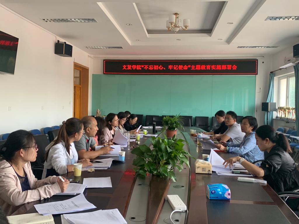 “不忘初心牢记使命”主题教育工作方案,于2019年9月19日13:10在文发楼322召开了动员部署会,学院领导班子、师生党支部书记参加了会议。会后各支部积极开展学习活动,并制定各支部方案。