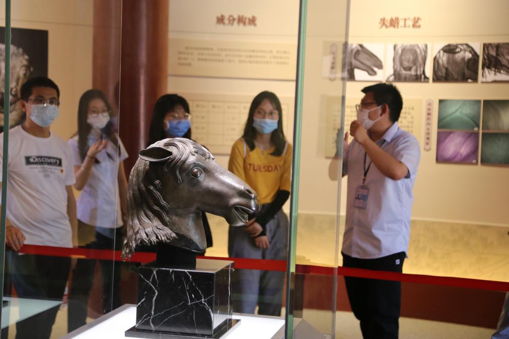 随后在讲解员的带领下,参观队伍来到正觉寺参观了三圣殿、文殊亭,其中展有牛首、猴首、马首、圆明园模型及各种文物及仿制品。师生党员们认真聆听讲解员所述的属于这些文物、模型的故事与知识。尤其是马首铜像“回家”,回到原属地圆明园,这是160年来第一件回归圆明园的流失海外重要文物。圆明重光,骏马归来,凝聚中华儿女守护民族根脉的爱国之心,弘扬中华民族坚韧不拔、百折不挠的民族精神,振奋人心。