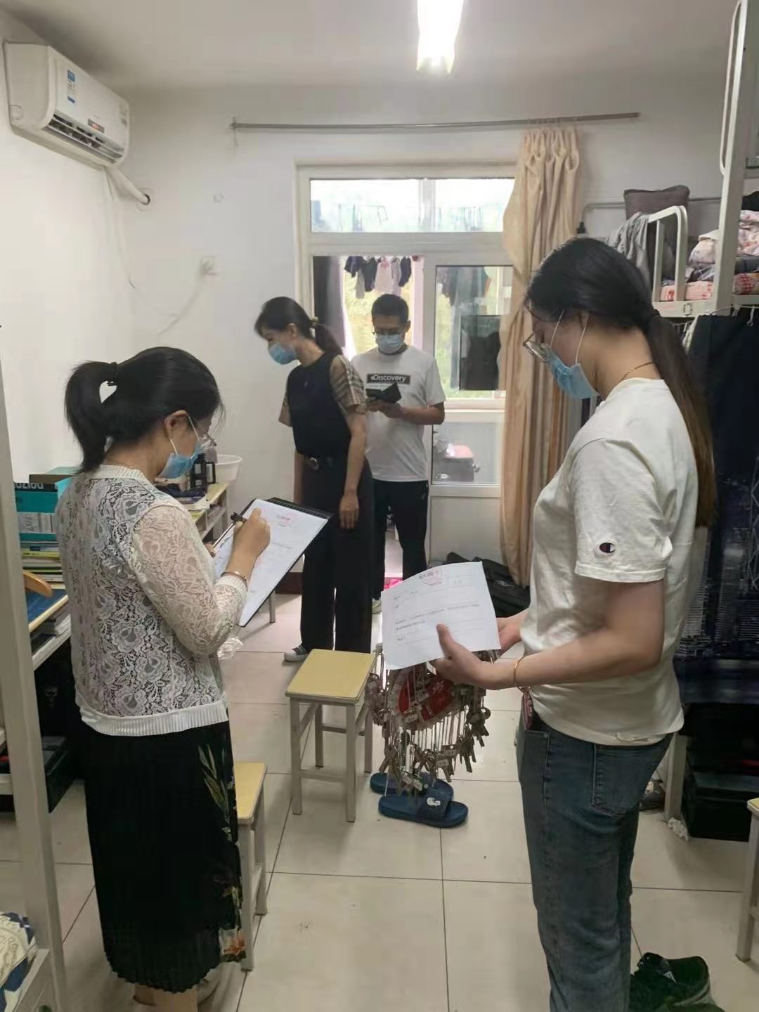 学院老师叮嘱同学们要强化安全意识,遵守宿舍用电规定,杜绝安全隐患,还要保持宿舍整洁,疫情防控不放松。老师们还对今年的毕业生宿舍进行了重点走访,提醒大家在毕业季也要注意保持宿舍卫生,打造良好居住环境。