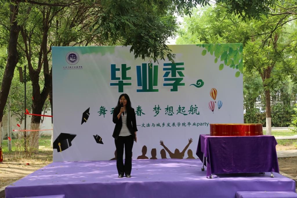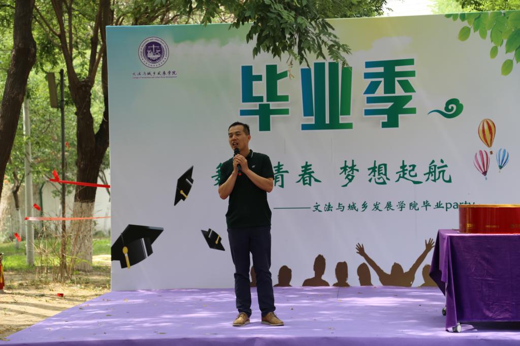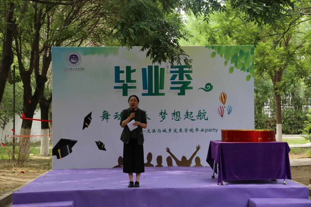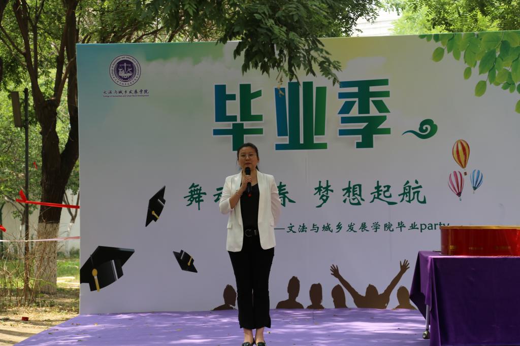 院长韩芳为这些即将步入社会的孩子们做出美好祝愿,希望同学们在日后的工作与生活中前程似锦。“路漫漫其修远兮,吾将上下而求索”,大学生涯就此告一段落,一个新的开始正蓄势待发。随后,学院中各系主任代表上台讲话。法学系主任宋桂兰老师上台做了简单讲话,“法理无情人有情”,老师的话字字说在心上。紧接着,会展系主任王军强老师结合自己的读书感悟为即将踏入社会的孩子们提出了两点希望,第一个是确立未来最终生活目标,那就是生活美满生活美好,第二是希望大家学会独立思考,有自己独立的发现。没有过于华丽的辞藻,有的只是对于学生最美好的祝愿。