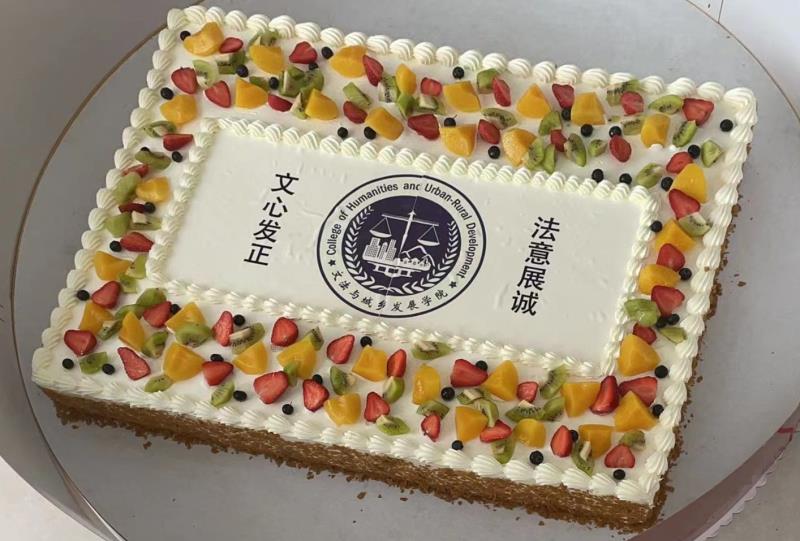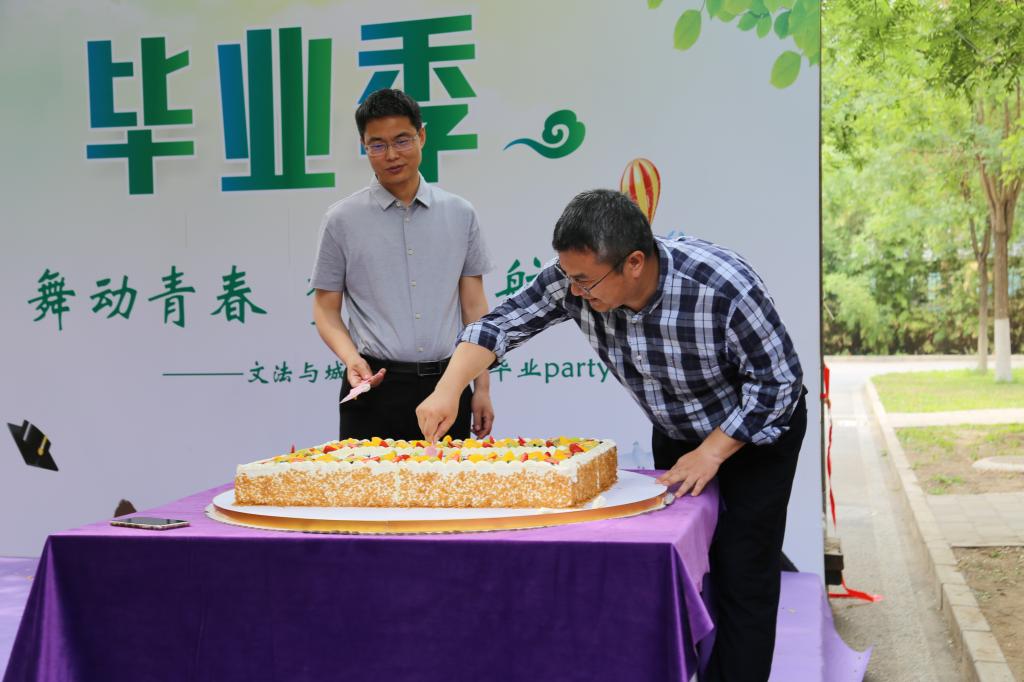 在文发楼前举行了毕业party,学院领导、老师和毕业生到场参加。