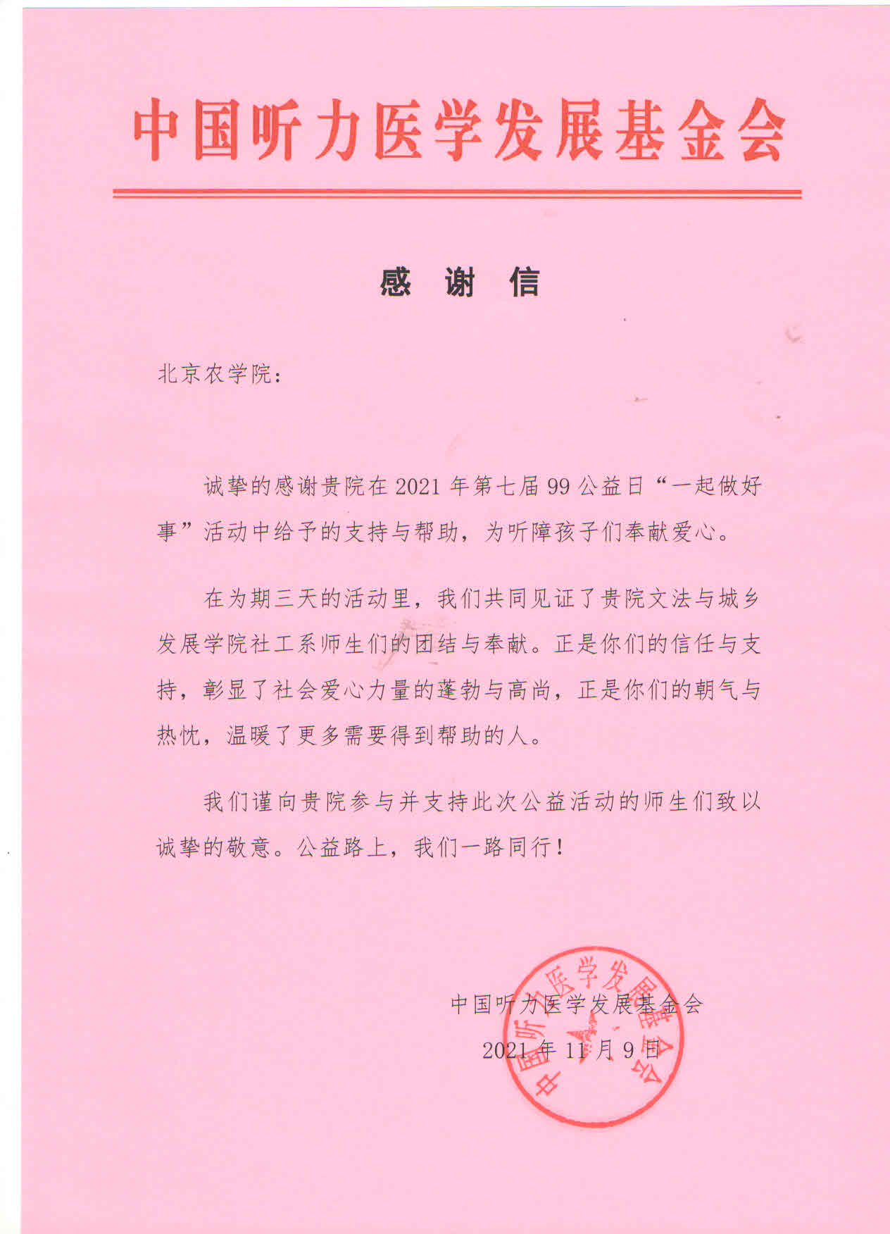 中国听力医学发展基金会感谢我校SB博彩 社工系师生参与志愿服务