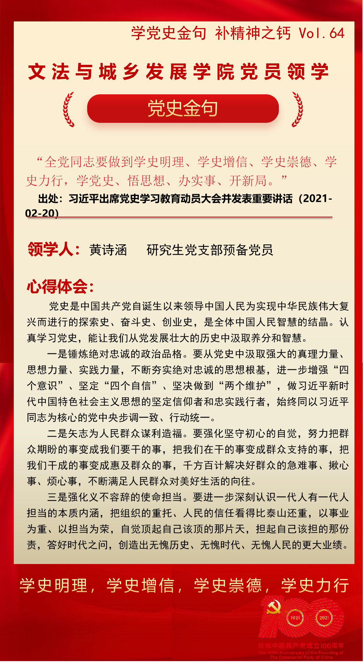 SB博彩 党员领学|学党史金句 补精神之钙 Vol.64