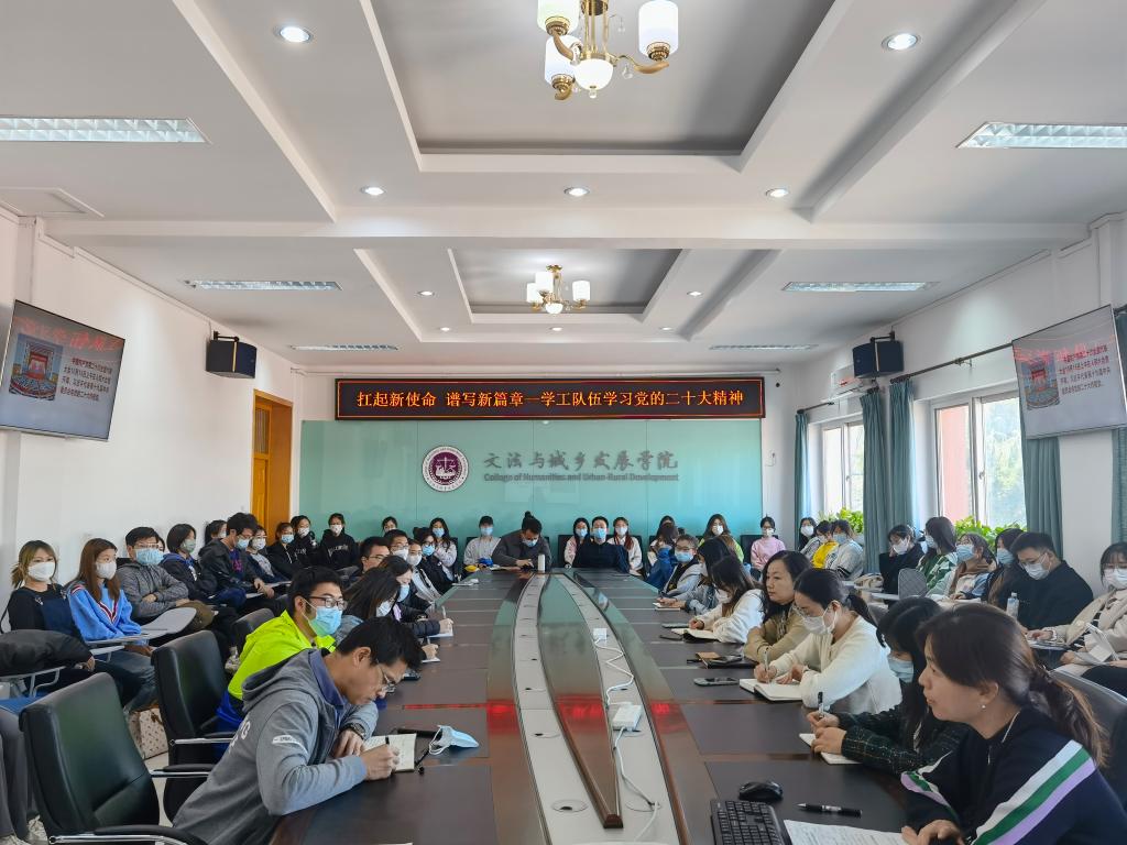 为深入学习宣传贯彻党的二十大精神,带领学工队伍深入学习习近平新时代中国特色社会主义思想,准确把握报告的主要特点和核心要义,提升学工队伍工作质量。10月24日中午,SB博彩
