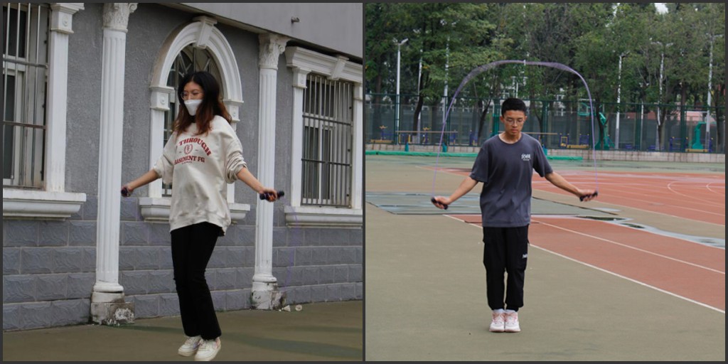 首先开展的是跳绳比赛。随着一声“开始”,一条条绳子立刻舞起了风声。参赛者的双手摇得飞快,绳子在他们的脚底下“嗖嗖”地穿过,舞动绳子的他们就像空中跳跃的精灵。每个人都全力以赴,表现出了不凡的实力。