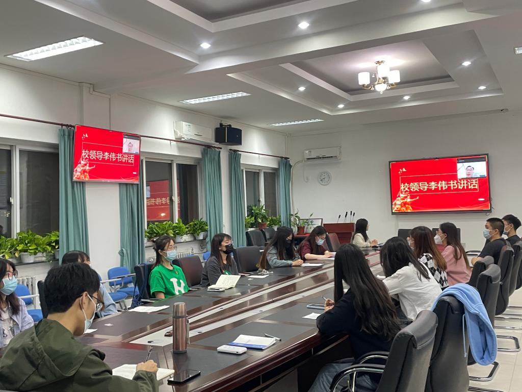 研究生党支部于9月28日召开以“喜迎二十大,永远跟党走”主题党日活动。会议采取线上线下相结合的方式,党委常委、纪委书记李伟书应邀参加。