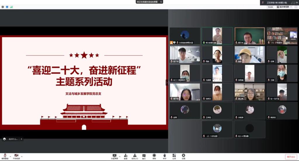 各学生党支部通过线上线下结合的方式陆续开展“喜迎二十大 永远跟党走”主题党日活动,学院班子成员、职能部门对接领导参会指导。