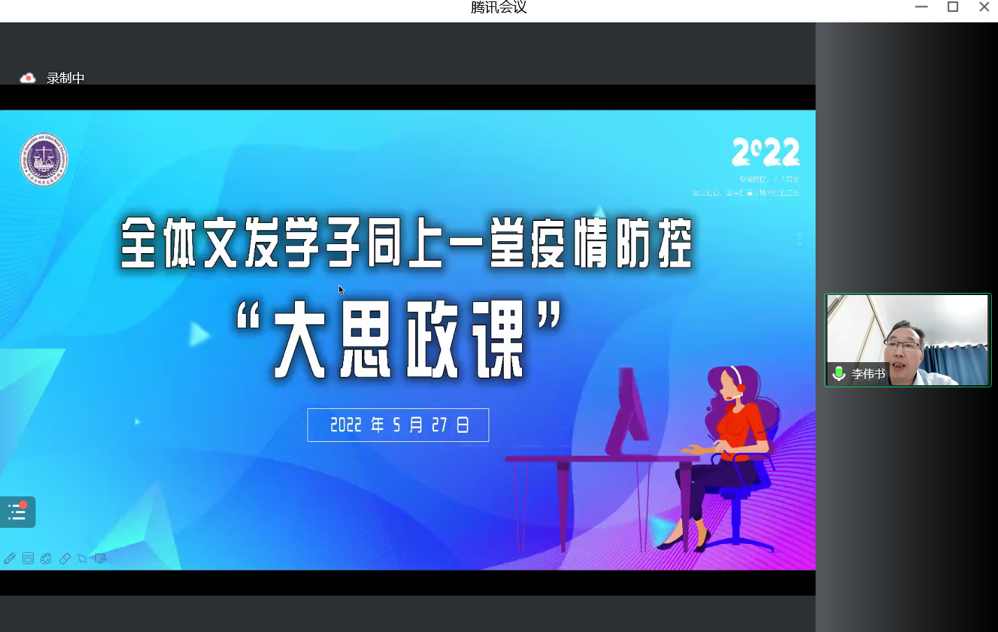 组织全院师生同上一堂疫情防控“大思政课”。院长韩芳主持,副院长龚刚强、夏龙、李云乐线上授课,孙曦、胡勇等班主任参加。校纪委书记、监察专员李伟书受邀参加。