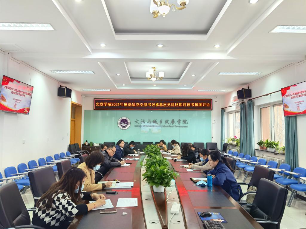 党总支于2022年3月11日下午3点在文发楼322召开了2021年度基层党支部书记抓基层党建工作述职评议考核和党支部考核会议,学院党总支委员、各基层党支部书记以及师生代表参加了此次会议。会议由党总支副书记、院长韩芳主持。