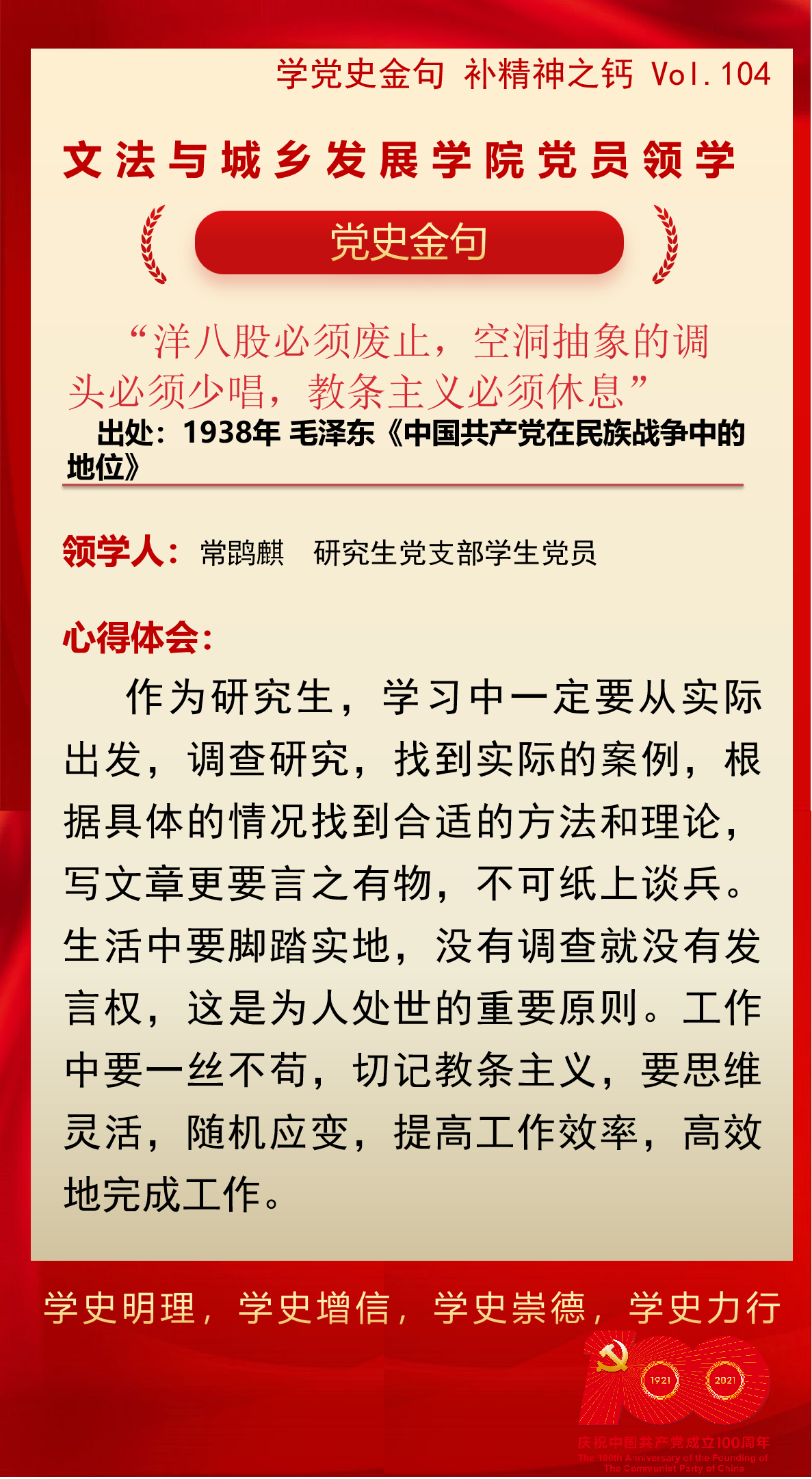 SB博彩 党员领学|学党史金句 补精神之钙 Vol.104