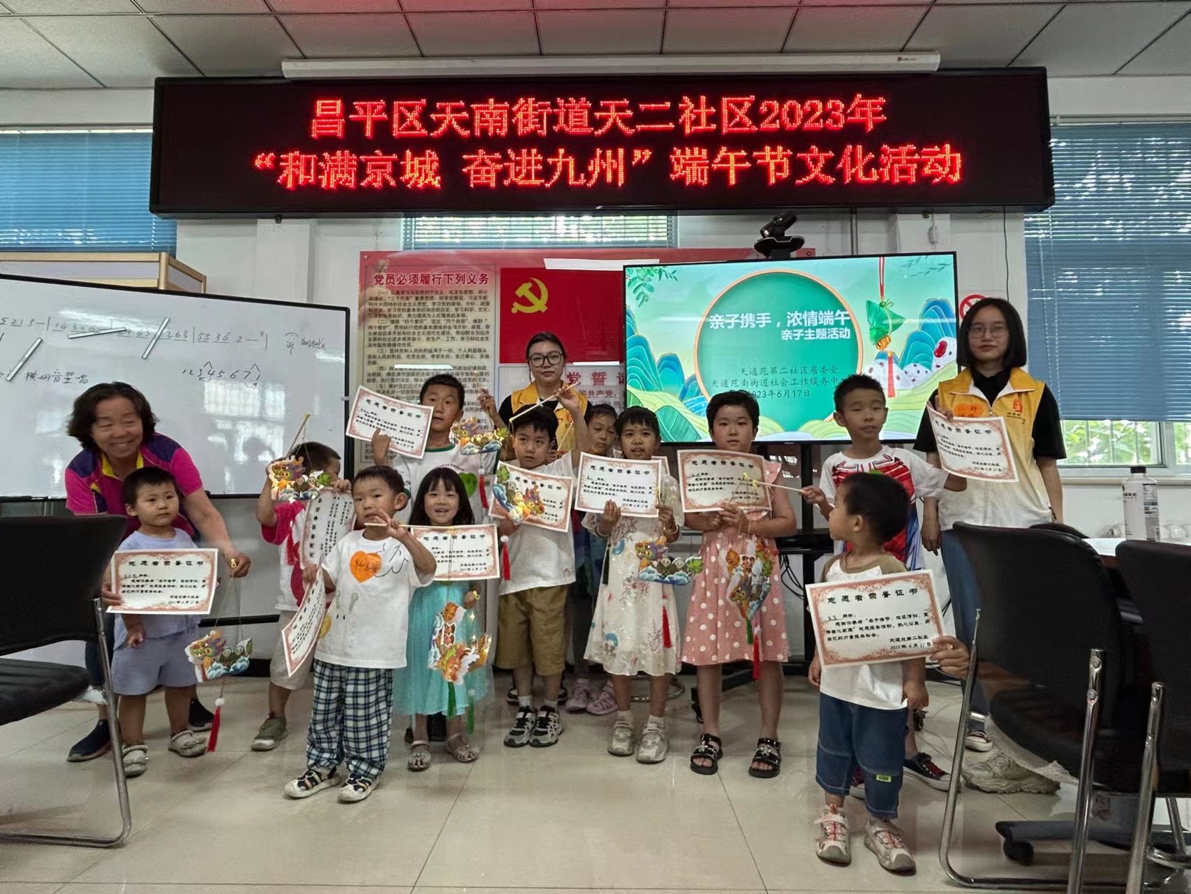 社会工作专业师生在天通苑第二社区居委会(以下简称天二社区居委会)开展了“亲子携手,浓情端午”主题亲子活动,吸引了11组家庭的积极参与。