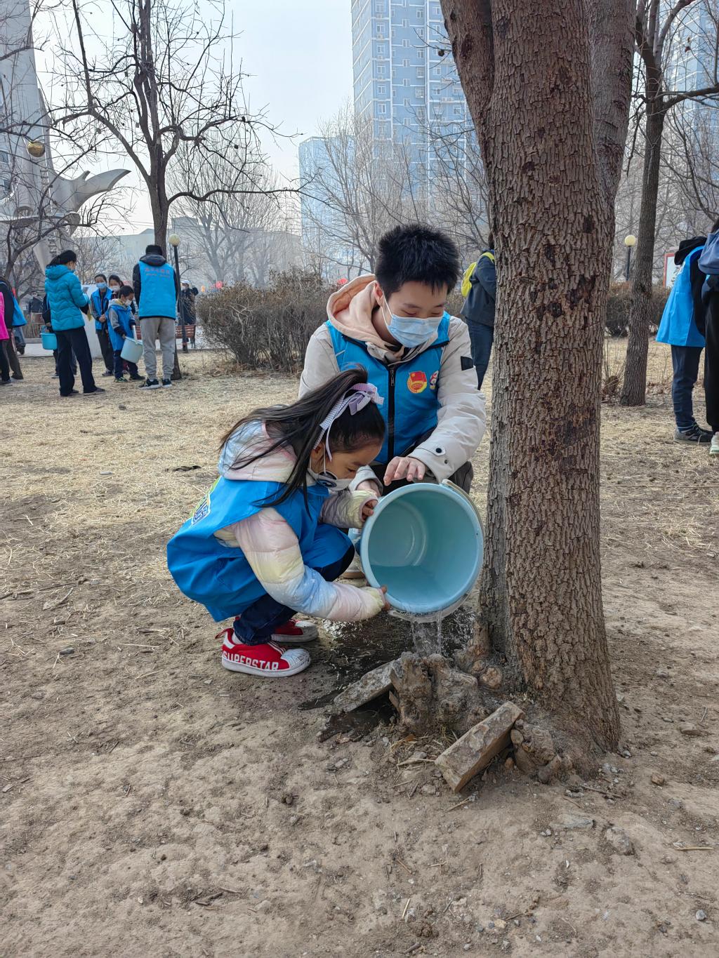 第二组志愿者同社区的小朋友们一起,为社区的小树浇水,让小朋友亲身体会到了保护环境和绿色发展的重要性,把保护环境牢记心中!