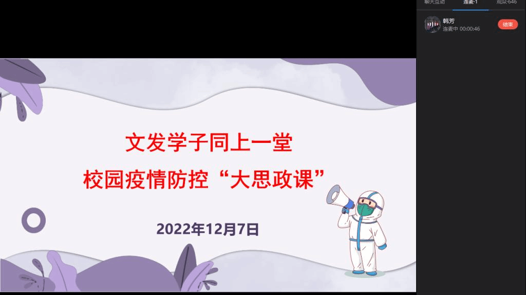 齐力给大家讲解了疫情带来的应激反应、可能出现的症状及应对措施。并希望同学有大局意识,当好自己健康的第一责任人!