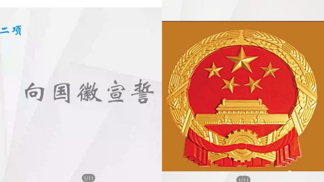 第二部分是向国徽宣誓。同学们在坚定铿锵的宣誓中感受到了宪法的神圣,增强了学习法学专业的信心。宣誓活动不仅弘扬了宪法精神也使宪法知识深入人心,从而让同学们更好地投入到学习、生活、工作之中,将自己培养为更优秀的人。
