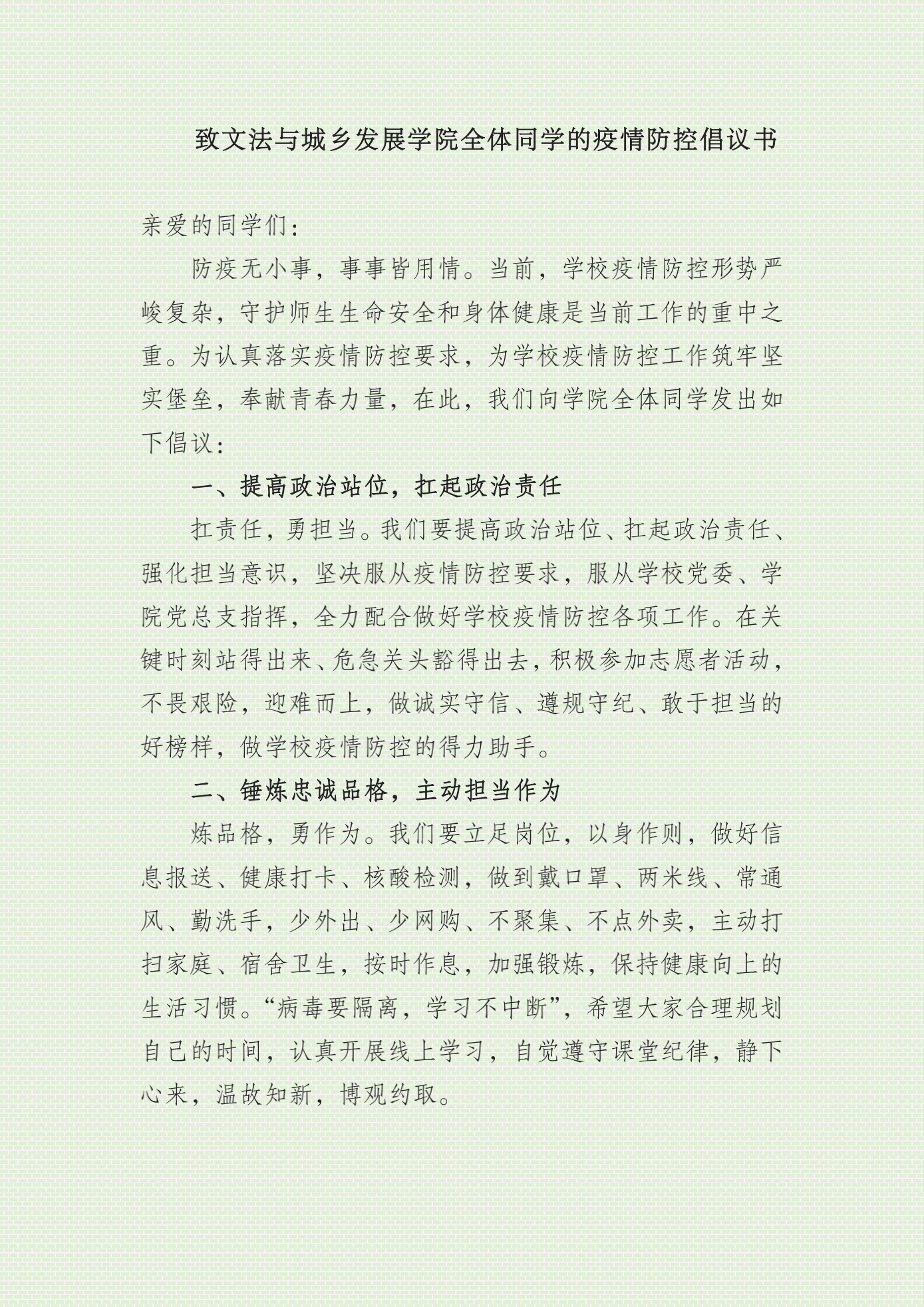 致SB博彩 全体同学的疫情防控倡议书