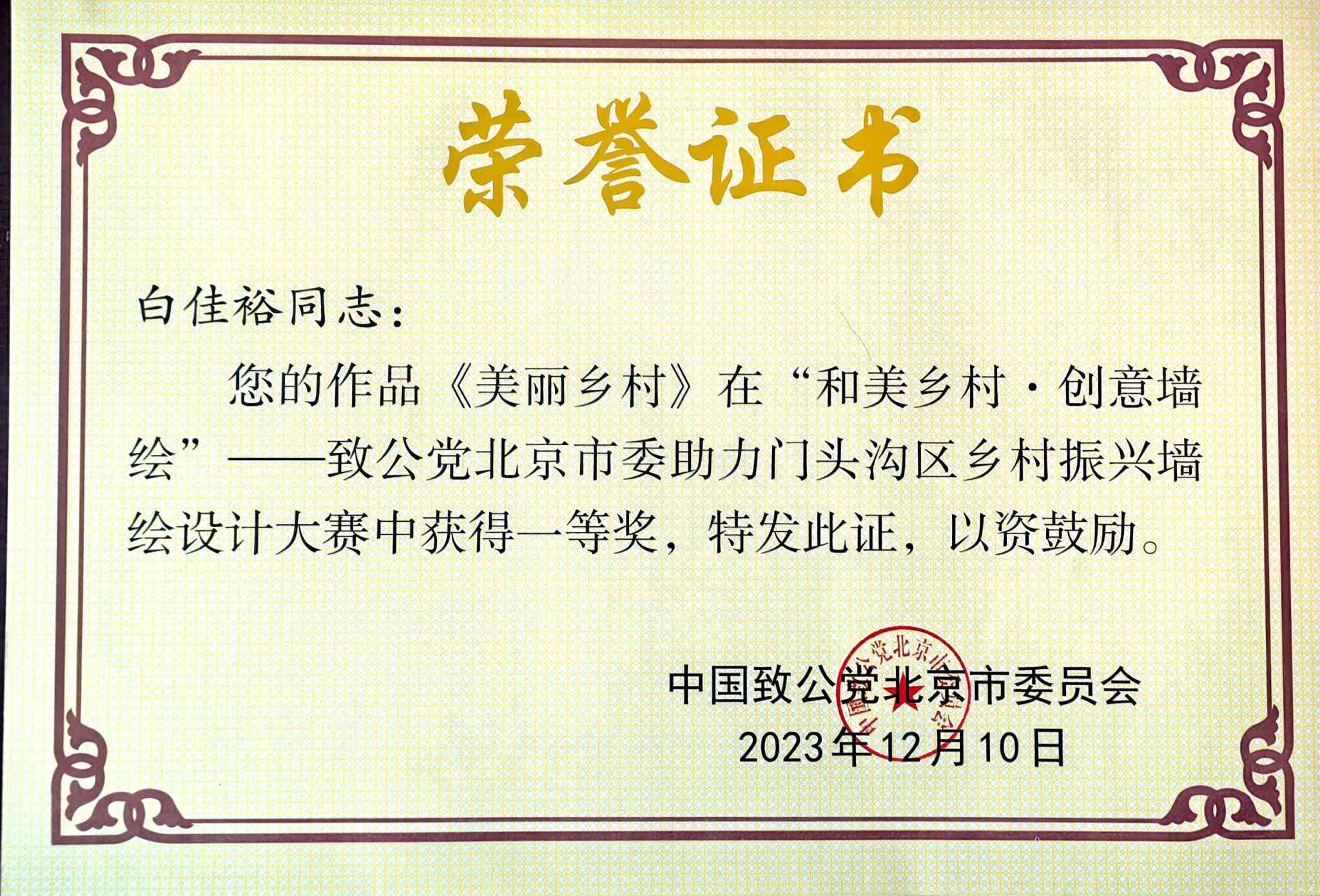 学生社团会展协会成员在门头沟区斋堂镇张家村墙绘设计大赛中取得了优异成绩!