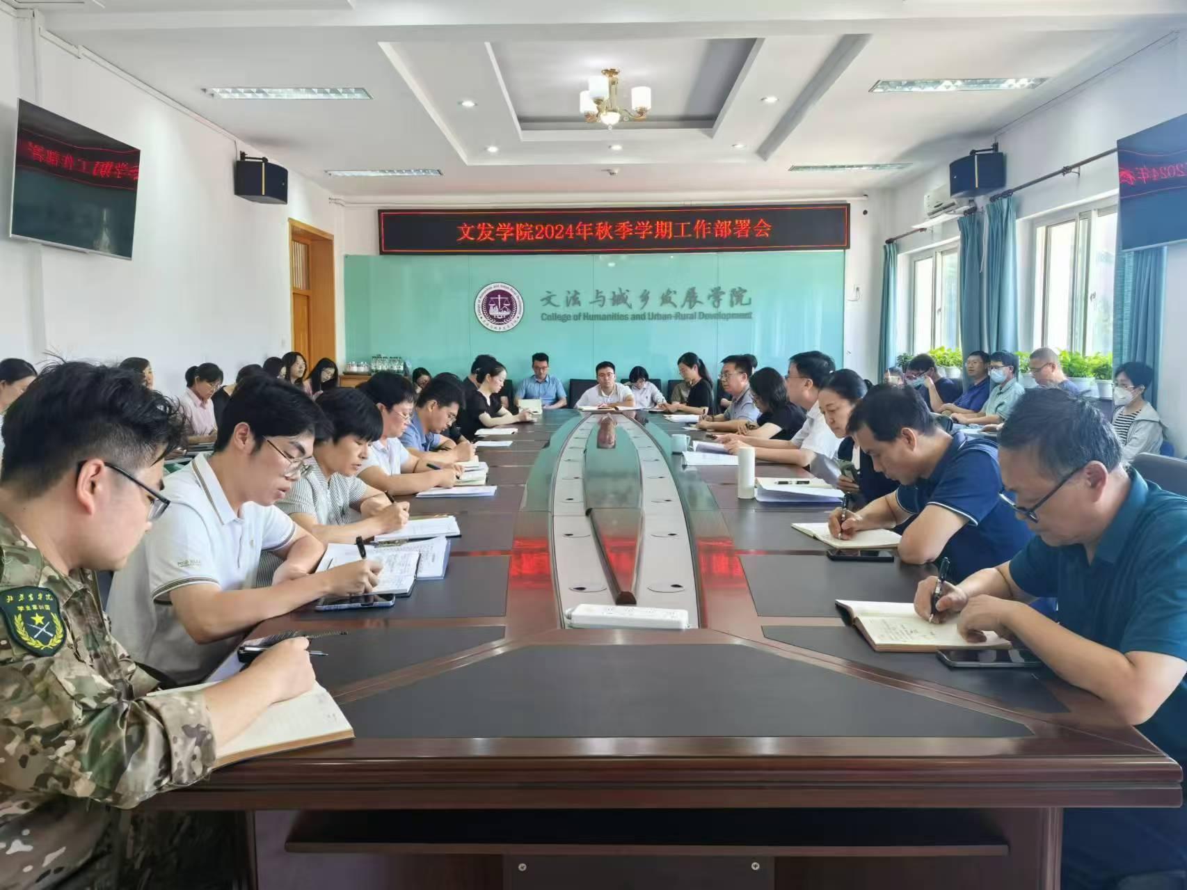 召开2024年秋季学期工作部署会。学院党委副书记、院长韩芳主持会议,全体教职工参加。