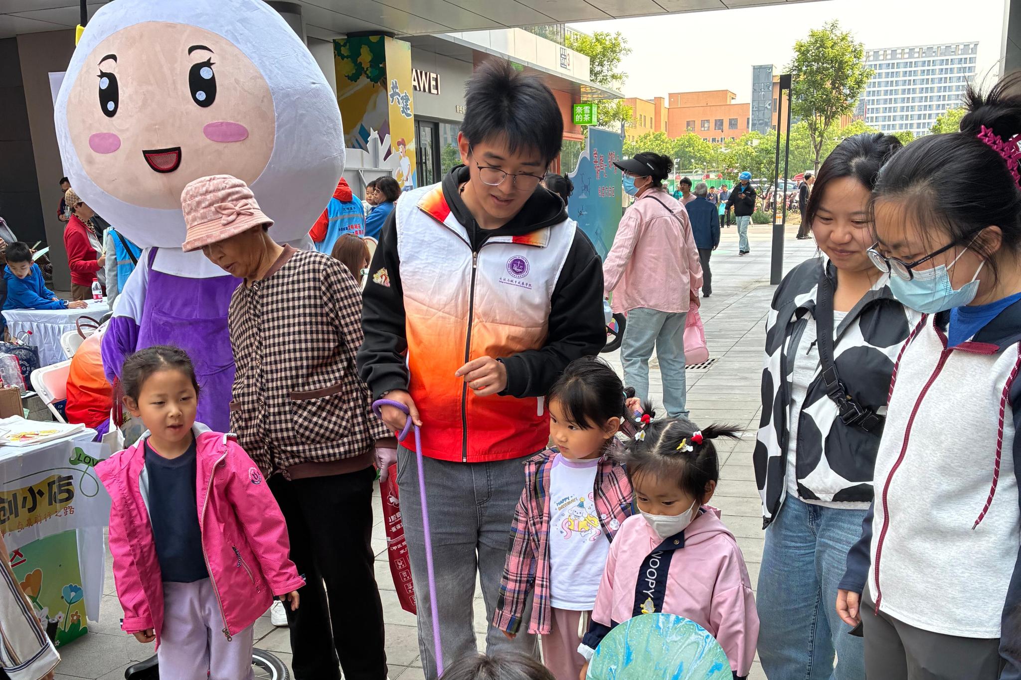 社工系和会展系充分发挥专业优势,围绕拉近邻里距离、增进社区关系设计了系列特色互动环节。社工系师生运用情景模拟等工作方法,使参与者沉浸式体验不同居民的日常生活,增进不同群体之间的理解。会展系师生设计系列文创产品,宣传倡导和谐友善社区氛围。此外,社工系精神抚慰犬也在现场助力本次社区邻里节活动,受到现场参与者的关注和喜爱。