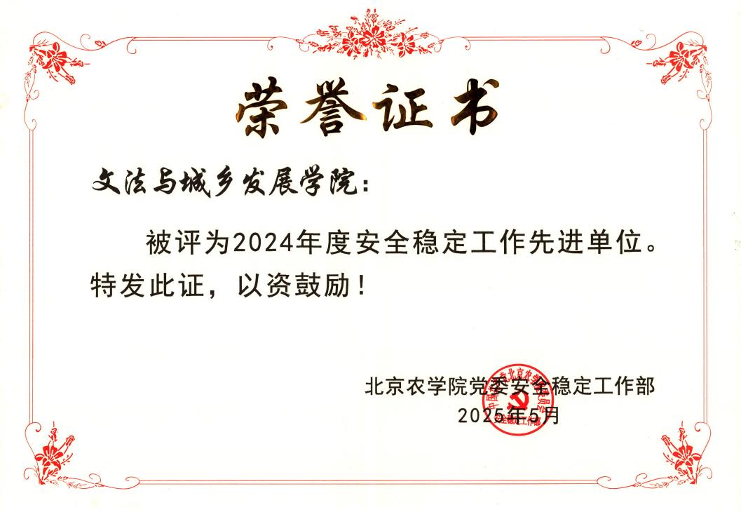被学校授予“2024年度安全稳定工作先进单位”荣誉称号。