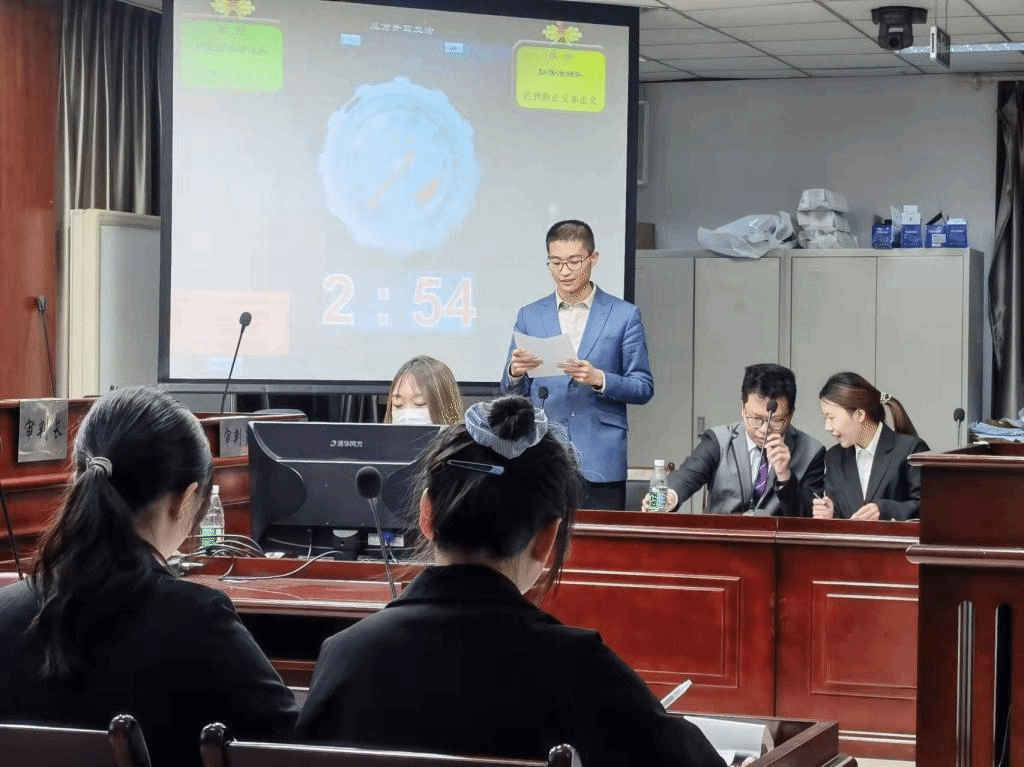 在模拟法庭举办了主题辩论赛,本次活动由学院青年法学会承办。担任此次比赛的评委是法学系的李刚老师、童光法老师,青年法学会会长于碧琳、乔颖达、张宇桐。由左凤雨菲和赵雨祺担任本次辩论赛主席。